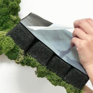 Het korstmos leeft niet meer en heeft geen onderhoud, water of zonlicht nodig. Het trekt geen stof of insecten aan en is hypoallergeen. Het korstmos behoudt zijn vorm, kleur en textuur.